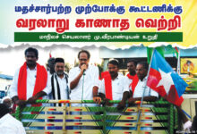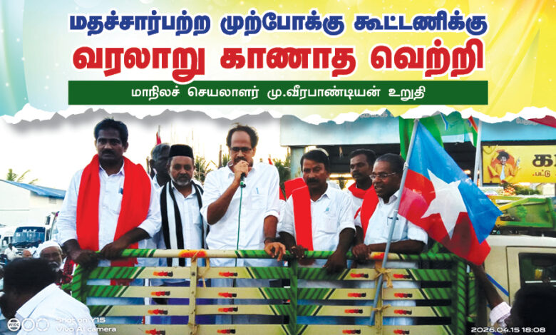 மதச்சார்பற்ற முற்போக்குக் கூட்டணிக்கு வரலாறு காணாத வெற்றியை தமிழக மக்கள் அளிப்பார்கள். இதனை மக்களைச் சந்திக்கும் போது உணர முடிகிறது என்று இந்தியக் கம்யூனிஸ்ட் கட்சியின் தமிழ்நாடு…