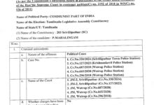 தமிழ்நாடு சட்டப்பேரவைத் தேர்தல் – 2026ல் இந்தியக் கம்யூனிஸ்ட் கட்சி சார்பாக போட்டியிடும் வேட்பாளர்கள் மீதான குற்ற வழக்குகள்..