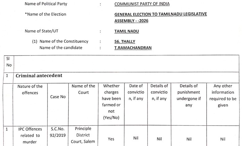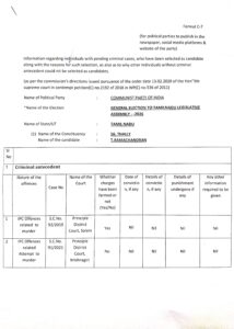 56 தளி சட்டமன்றத் தொகுதி வேட்பாளர் ராமச்சந்திரன் அவர்களின் குற்றப் பின்னணி குறித்த விவரங்கள்..