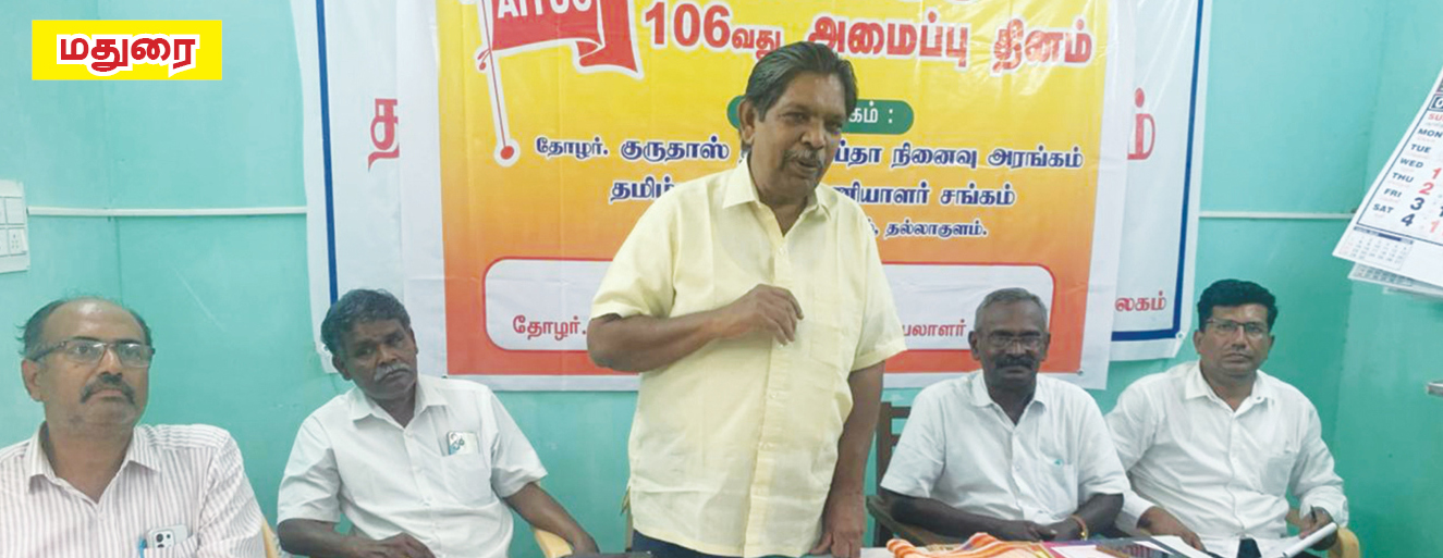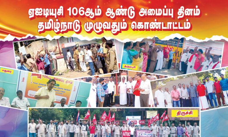 இந்தியத் தொழிலாளி வர்க்கத்தின் முதல் தொழிற்சங்கமான ஏஐடியுசியின் 106ஆம் ஆண்டு அமைப்பு தினம் தமிழ்நாடு முழுவதும் கொண்டாடப்பட்டது.