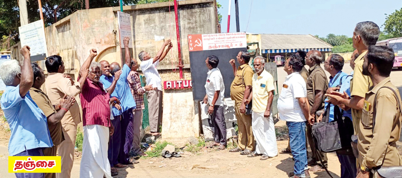 தமிழ்நாடு அரசுப் போக்குவரத்துக் கழகம் தஞ்சாவூர் புறநகர் கரந்தை கிளை, ஜெபமாலைபுரம் தஞ்சாவூர் நகர் கிளை, திலகர் திடல் மாலை நேர காய்கறி அங்காடி, தமிழ்நாடு நுகர்வோர் பொருள் வாணிபக் கழக மண்டல அலுவலகம், கட்டுமானம், ஆட்டோ நிறுத்தம் ஆகிய இடங்களில் கொடியேற்றப்பட்டது. நிகழ்வில் ஏஐடியுசி மாவட்டச் செயலாளர் துரை.மதிவாணன், தமிழ்நாடு பண்ணைசங்க மாநிலத் துணைத் தலைவர் தி.திருநாவுக்கரசு உள்ளிட்டோர் கலந்து கொன்டனர்.