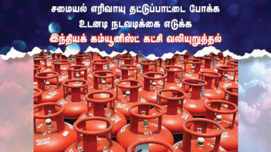சமையல் எரிவாயு தட்டுப்பாட்டை போக்க உடனடி நடவடிக்கை எடுக்க வேண்டும் என இந்தியக் கம்யூனிஸ்ட் கட்சி வலியுறுத்தி உள்ளது. இது தொடர்பாக…