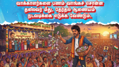 வாக்காளர்களை பணம் வாங்கச் சொன்ன தலைவர் மீது, தேர்தல் ஆணையம் நடவடிக்கை எடுக்க வேண்டும்.
