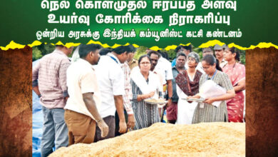 தமிழ்நாடு அரசு முன்வைத்த நெல் கொள்முதல் ஈரப்பத அளவு உயர்வு கோரிக்கையை ஒன்றிய அரசு நிராகரித்து விவசாயிகளை வஞ்சித்துள்ளதற்கு இந்தியக் கம்யூனிஸ்ட்…