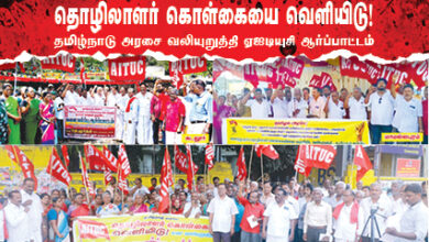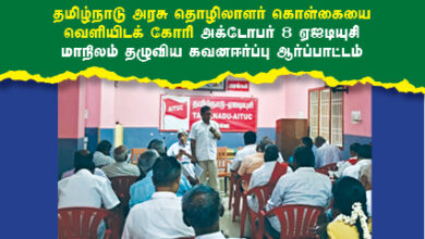 ஏஐடியுசி சார்பாக தமிழ்நாடு தழுவிய கவன ஈர்ப்பு ஆர்ப்பாட்டம் அக்டோபர் 8ஆம் தேதி நடைபெற்றது. இதில் தமிழ்நாடு அரசே, தொழிலாளர் கொள்கையை…