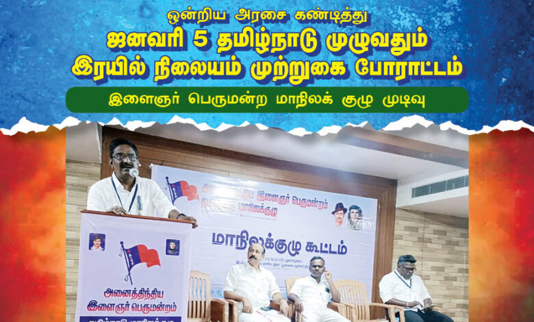 ஒன்றிய அரசை கண்டித்து ஜனவரி 5 தமிழ்நாடு முழுவதும் இரயில் நிலையம் முற்றுகை