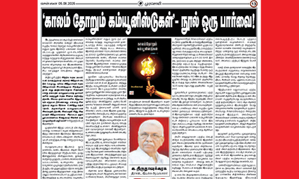 இவ்­வாறு முழங்­கும் ‘காலம் தோறும் கம்­யூ­னிஸ்­டு­கள்’ எனும் நூல் நம் பார்­வைக்கு வந்­தது. வழு­வ­ழுப்­பான தாள். உயர்ந்த அச்சு; படிப்­ப­தற்கு எளி­தான வகைப்­பாடு. சிறந்த கட்­டட அமைப்பு, இரண்டு பாகங்­கள்–524 பக்­கங்­கள் விலை ரூ.2000/. நூலின் ஏடு­க­ளைப் புரட்­டி­னால் களங்­க­ளைக் கண்ட வீரர்­கள் எம்மை நோக்­கிப் பேசு­கி­றார்­கள். எம்மை பின் நோக்கி இழுக்­கி­றார்­கள். எல்­லாம் முடிந்த போது முன்னே போங்­கள்– ‘வேலை இருக்­கி­றது, நிரம்ப!’ என்­கி­றார்­கள் அறி­ஞர் அண்ணாவைப்­போல!