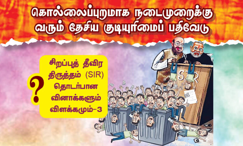‘சிறப்புத் தீவிர திருத்தம் (SIR) தொடர்பான வினாக்களும் விளக்கமும்’ வரிசையின் மூன்றாவது பகுதி வருமாறு: