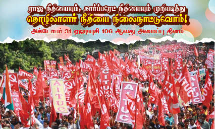 இந்தச் சூழலில் இந்த ஆண்டு அக்டோபர் 31 அன்று ஏஐடியுசி தனது 106 ஆவது அமைப்பு தினத்தை நாடெங்கும் கொண்டாடத் தயாராகி வருகிறது. தொழிற்சங்கங்களை ஒருங்கிணைத்து ஒன்றுபட்ட போராட்டத்தை முன்னெடுப்பதற்கான அளப்பறிய கடமையைச் செய்து முடித்த ஏஐடியுசியின் முந்தைய பொதுச்செயலாளர் தோழர் குருதாஸ் தாஸ் குப்தா அவர்களின் நினைவு நாளும் இதுவே. இந்த நாள் கொண்டாட்டங்கள் கௌடியல்யர் கூறியதைப்போல் அரசின் மீதான நம்பிக்கையை உடைத்து வீழ்ச்சியை ஏற்படுத்துவதற்கான அவசியத்தை உணர்த்துகின்றன. தொழிலாளி வர்க்கத்தின் இந்தப் போராட்டத்தில் ஏஐடியுசி முன்னிலும் முனைப்பாக முன்னேறும்.