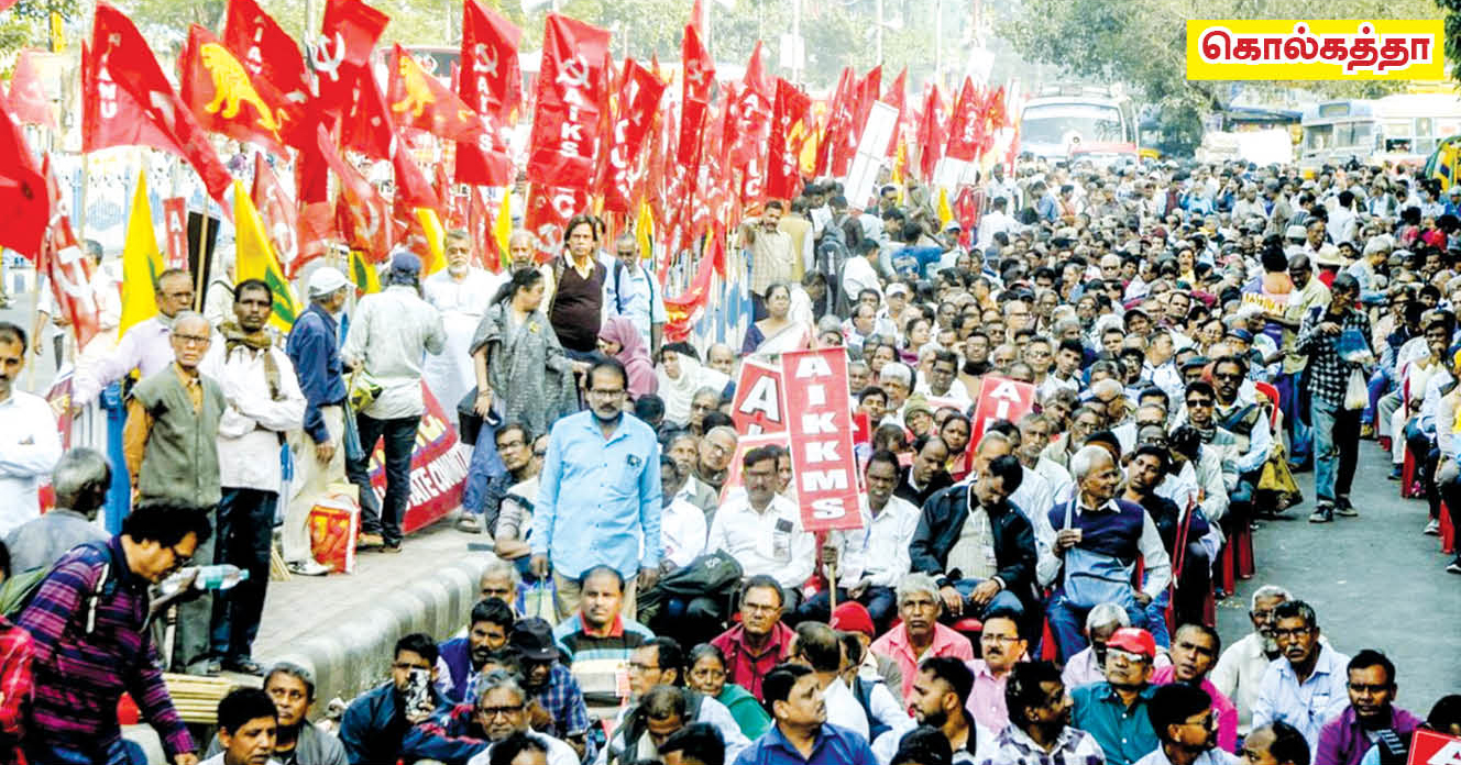 பத்து மத்திய தொழிற்சங்கங்கள் மற்றும் ஐக்கிய விவசாயிகள் முன்னணி (SKM) விடுத்த கூட்டுப் பிரகடனத்தின் அடிப்படையில், தமிழ்நாடு உட்பட நாடு முழுவதும் ஆர்ப்பாட்டங்கள் அனலாய்ப் பறந்தன. தொழிலாளர்களும் விவசாயிகளும் ஒன்றாக இணைந்து தங்களின் உரிமைகளுக்காகப் போராடினர்.