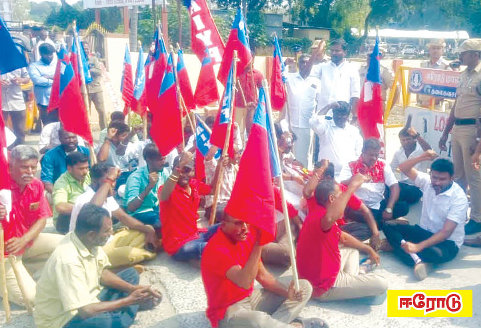 அரியலூர் மாவட்டத்தில் மாவட்ட அமைப்பாளர் ஆர்.தமிழ்மணி தலைமையில் போராட்டம் நடைபெற்றது.