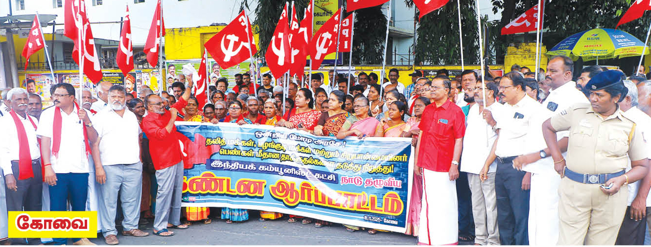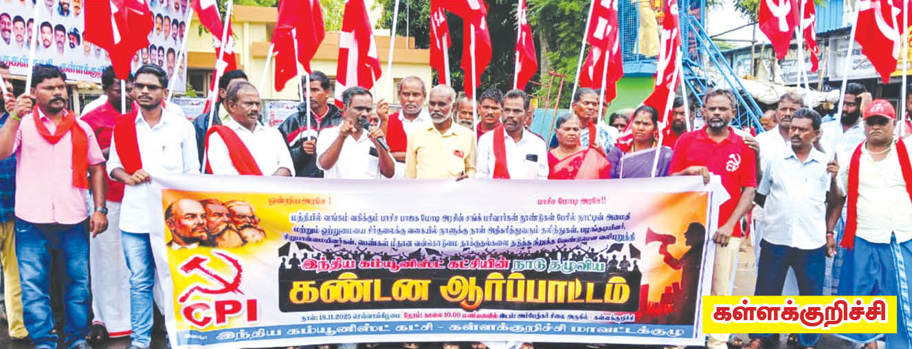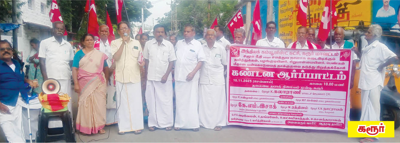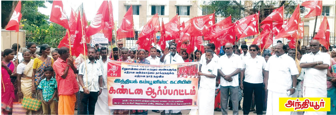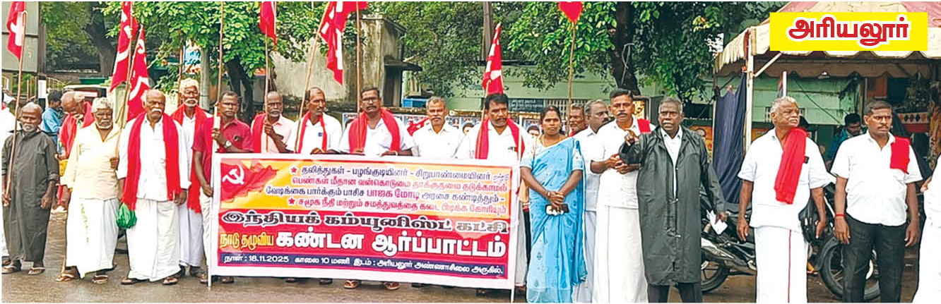 18.11.2025 நாளினை இந்தியக் கம்யூனிஸ்ட் கட்சி சமூக நீதி மற்றும் சமத்துவ நாளாகக் கடைபிடித்தும் தலித்துகள் பழங்குடியினர் பெண்கள் மீதான வன்கொடுமைத் தாக்குதலைத் தடுத்து நிறுத்தக் கோரி நாடு தழுவிய ஆர்ப்பாட்டம் நடைபெற்றது.