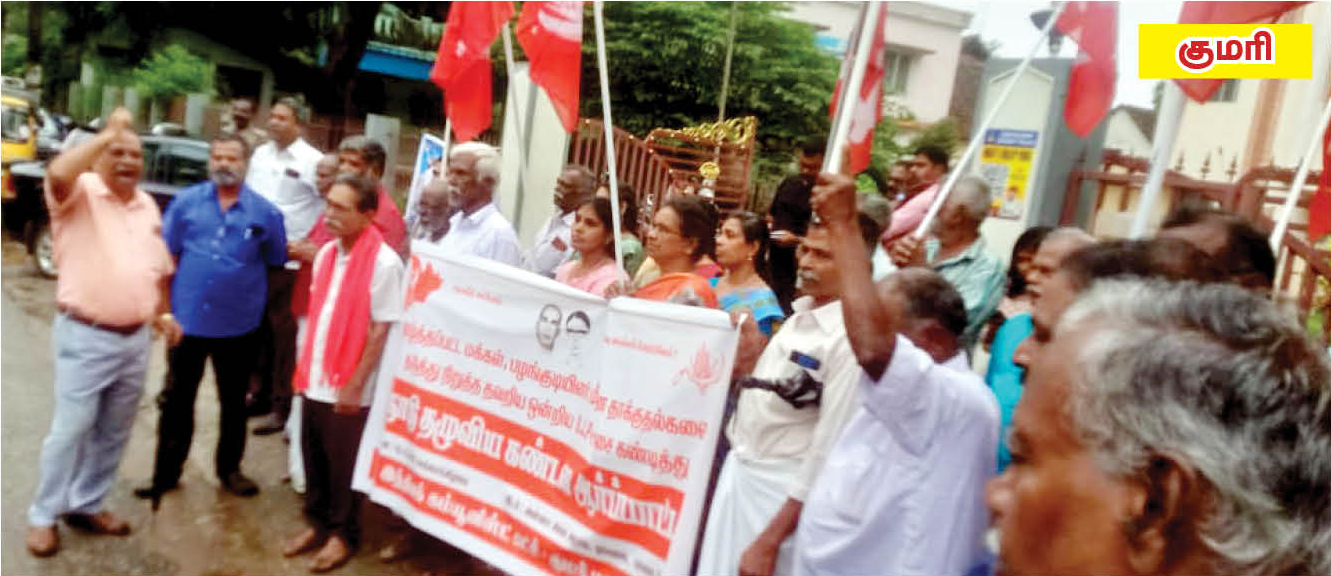 கன்னியாகுமரி: குமரி மாவட்டம் தக்கலையில் கண்டன ஆர்ப்பாட்டம் நடைபெற்றது. ஆர்ப்பாட்டத்திற்கு இந்தியக் கம்யூனிஸ்டு கட்சியின் மாவட்டக் குழு உறுப்பினர் எஸ்.ராஜீ தலைமை தாங்கினார். மாவட்டப் பொருளாளர் பி.தாமரைசிங் முன்னிலை வகித்தார். கட்சியின் மாவட்ட துணைச் செயலாளர் ஜி.சுரேஷ் தொடங்கி வைத்தார். மாவட்டக் குழு உறுப்பினர் பேராசிரியர் எஸ்.சுந்தரம், இந்தியக் கம்யூனிஸ்டு கட்சியின் மாவட்ட துணைச் செயலாளர் எஸ்.அனில்குமார் ஆகியோர் கண்டன உரை நிகழ்த்தினர். மாவட்டச் செயலாளர் தா.சுபாஷ் சந்திர போஸ் முடித்து வைத்தார்.