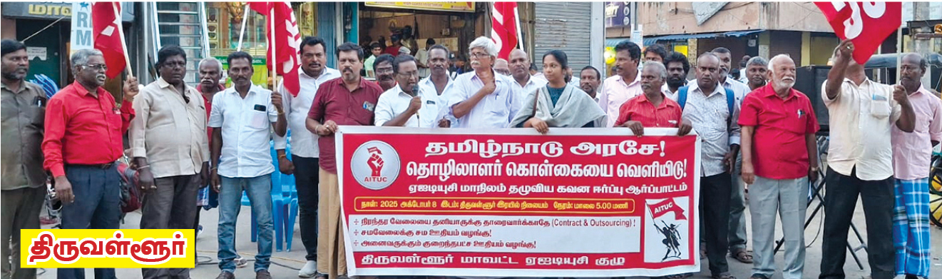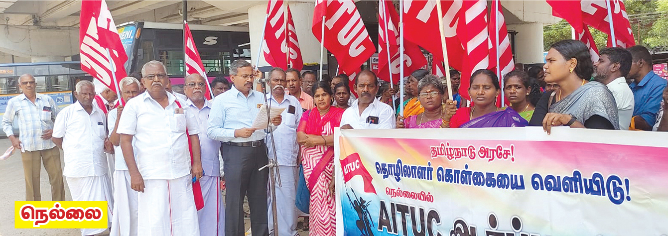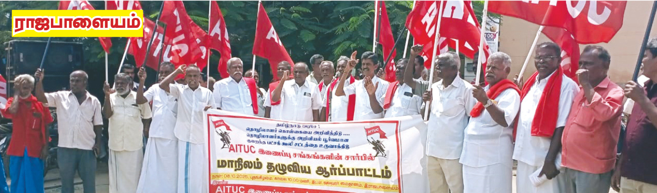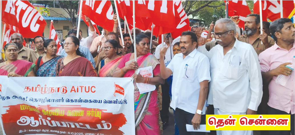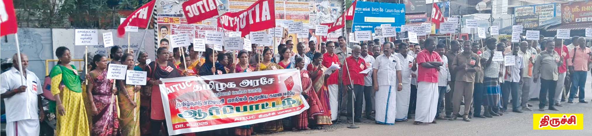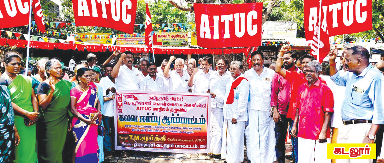 ஏஐடியுசி சார்பாக தமிழ்நாடு தழுவிய கவன ஈர்ப்பு ஆர்ப்பாட்டம் அக்டோபர் 8ஆம் தேதி நடைபெற்றது.