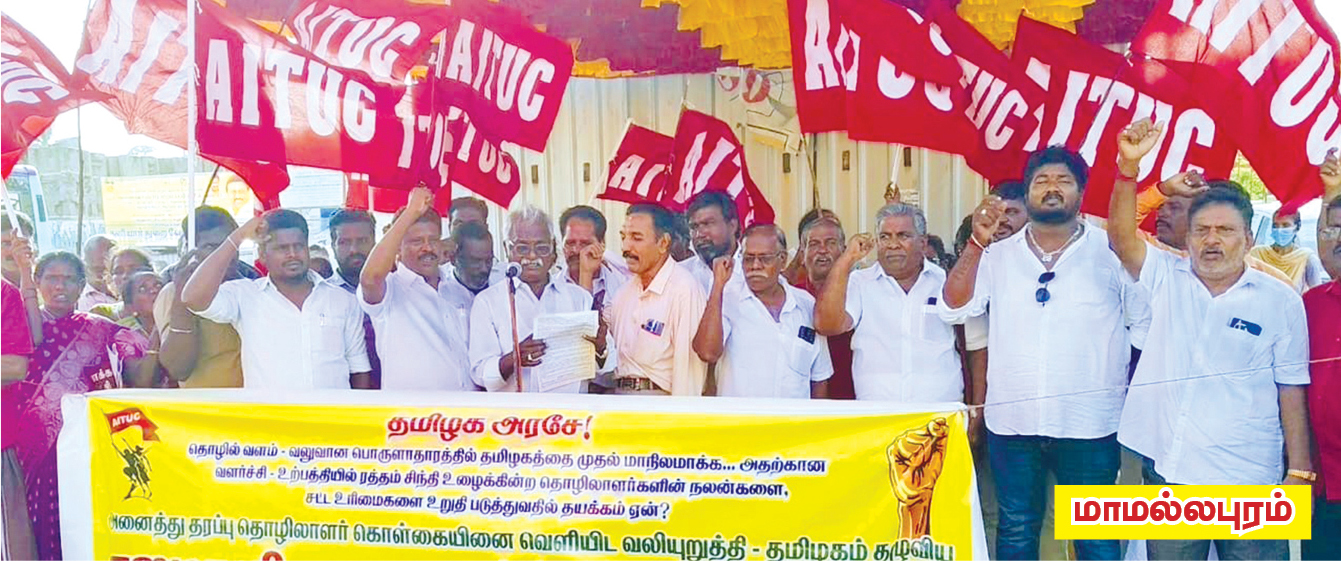 செங்கல்பட்டு மாவட்டம் மாமல்லபுரத்தில் மாவட்ட உள்ளாட்சித் தலைவர் தேவராஜன் தலைமையில் நடைபெற்ற ஆர்ப்பாட்டத்தில் நா.பெரியசாமி முன்னாள் எம்.எல்,ஏ., தென்சென்னையில் ஏஐடியுசி தேசிய செயலாளர் வஹிதா நிஜாம், எஸ். ஏழுமலை, எஸ்.கே.சிவா, விழுப்புரத்தில் செல்வம் தலைமையில் நடைபெற்ற ஆர்ப்பாட்டத்தில் டாக்டர் ஏ.ஆர்.சாந்தி ஆகியோரும் சிறப்புரையாற்றினார்.